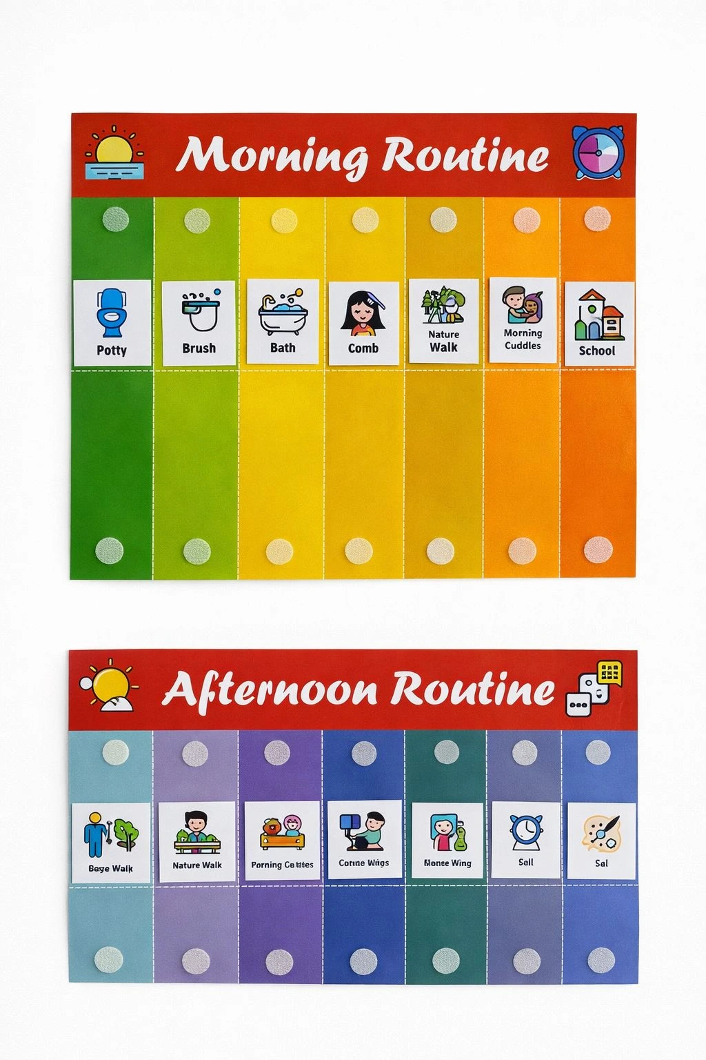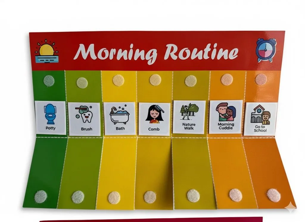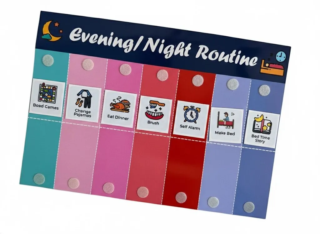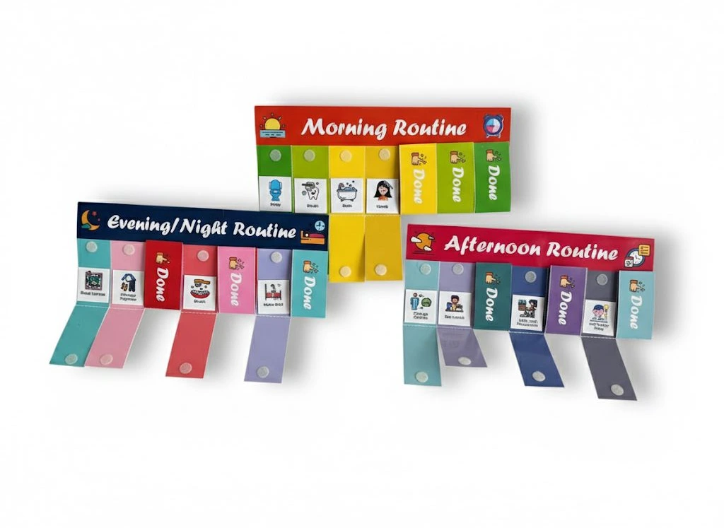 • HABIT-BUILDING CHARTS: Designed as educational games to encourage positive behaviour patterns, helping children transition smoothly between morning preparations, afternoon activities, and evening wind-down routines
