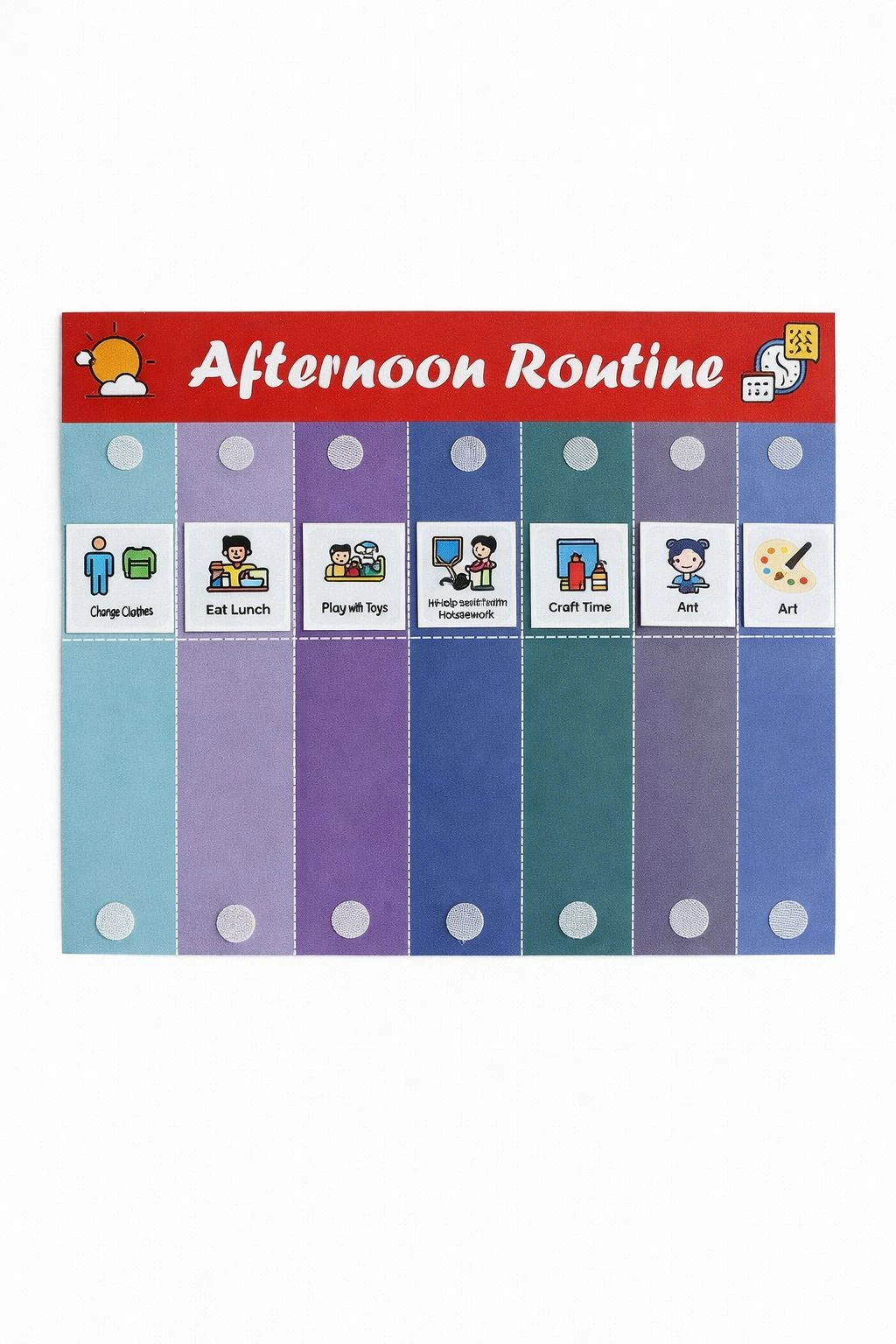 • FLEXIBLE AND REUSABLE: Velcro attachment system allows parents to easily add, remove, or rearrange activities as routines change, making it adaptable to different schedules and family needs