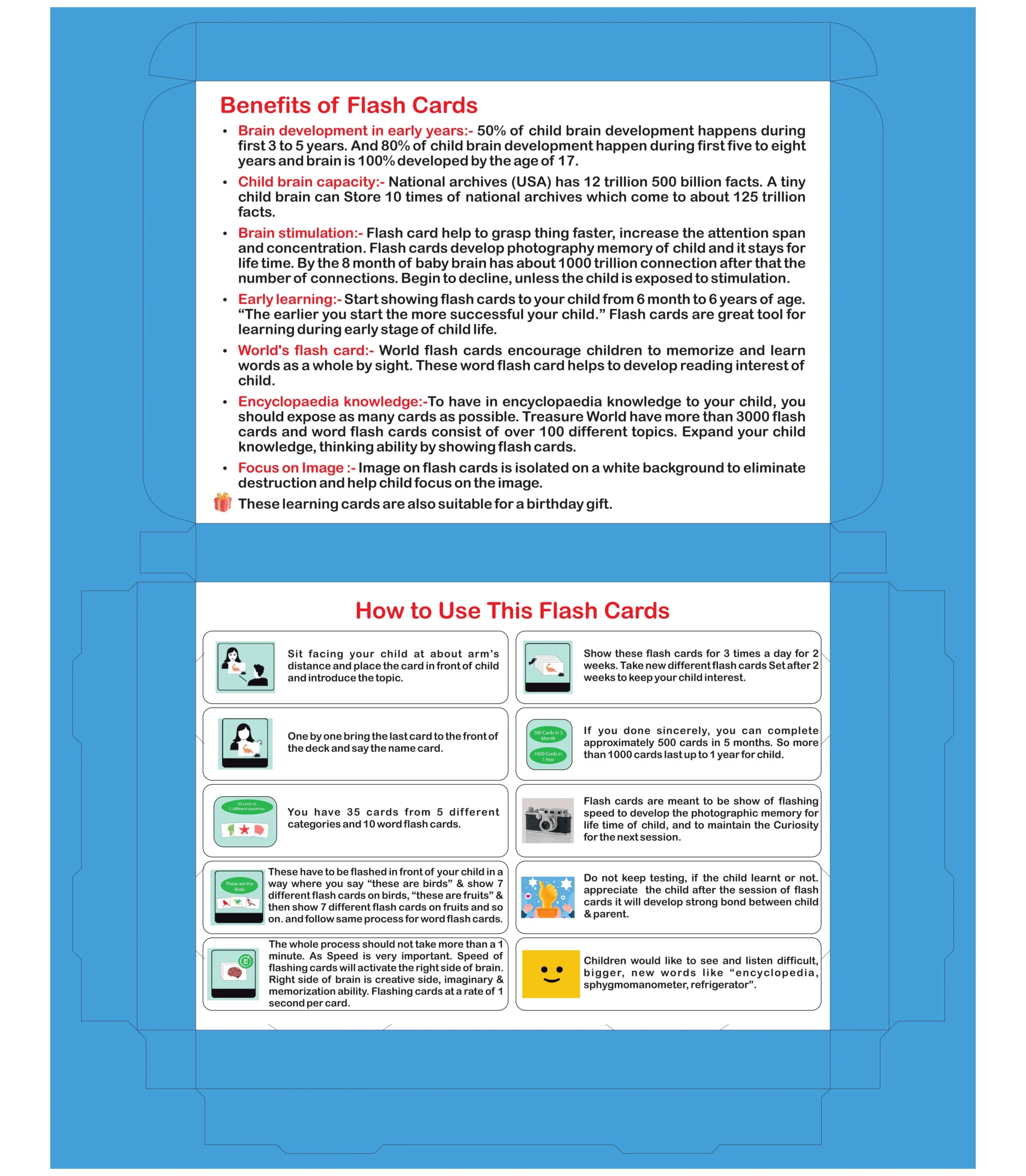 • Double-Sided Learning: Front side displays the picture, while the back side has the name of the object for easy word association.